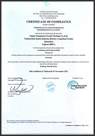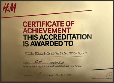 Wanziman based on the strong foundation, is the first in the domestic sweater industry received the IS09001 Quality Management System Certification, IS014001 Environmental Management System certification, SA8000 Social Responsibility Management System Certification, and WARP, Social Responsibility Management and Anti-Terrorism System Certification, and obtain the National Safety Production Standardization Secondary Certificate; also obtained CU audit through the GRS Textile and Garment Recycling System and OCS Organic Standard Product Production License Certification.